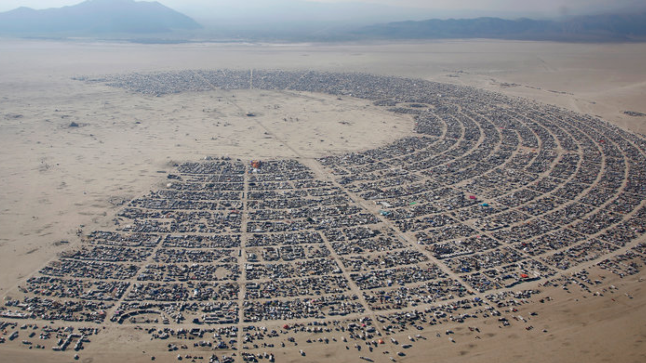 Y pensé en ejemplos claros de esto y se me ocurrió rápidamente pensar en la ciudad de «Black Rock City» en Nevada. Para los que no conocen el fenómeno de Burning Man les cuento que, una vez al año se reúnen en el desierto de Nevada una grupo increíble de gente que se mantiene unido en tribu y se manifiestan físicamente, este año por ejemplo del 25 de agosto al 2 de septiembre, dando forma a esta ciudad que no tiene gobierno ni municipio y que dura solo una semana.
